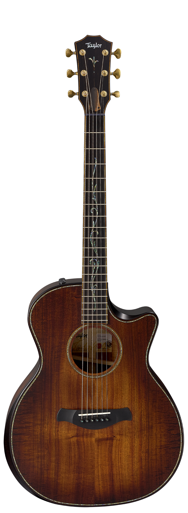 6-String | Hawaiian Koa Top | Hawaiian Koa Back and Sides | Tropical Mahogany Neck | West African Crelicam Ebony Fretboard | Expression System® 2 Electronics | Beveled Cutaway | Taylor Deluxe Hardshell Brown Case